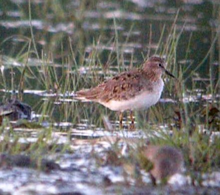 Of course this rather cast doubt on the three little stints claim from the previous day - the birds were even in the same location on the Meadow and for his claim to stand one would have to invoke the six bird theory! Accordingly the next day I gave the chap a call and discussed with him what he'd seen. His description of the back of the birds fitted a Temminck's perfectly and it appeared that he had previously mainly seen them in the autumn and so was expecting something rather plainer. So that little mystery was cleared up.